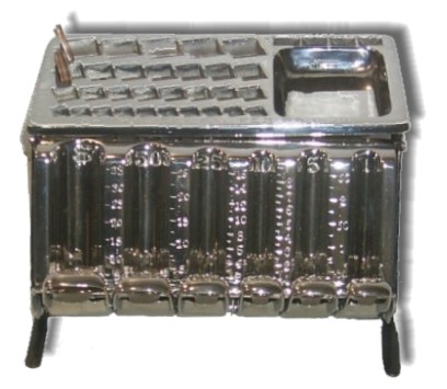 description: "Staats Tray" countertop money changer. Dispenses pennies, nickels, dimes, quarters, half dollars and dollar coins. In addition the top has a loose change tray and slots to organize all the coins. information: The top tray has compartments for sorting nickels, dimes, quarters, half dollars, and dollar coins. The top dispensing levers are nickel plated and the four legged base is cast iron. |
