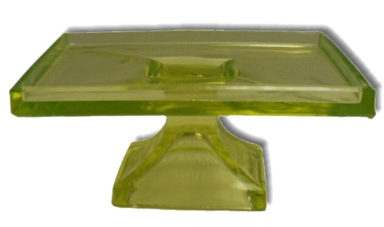 description: Bright green, pressed glass, gum box display pedestal with "CLARKS TEABERRY GUM" molded on all four sides of the base. This countertop pedestal was made to display a box of Clark's Teaberry Chewing Gum. This display pedestal was available in clear and bright green glass. |