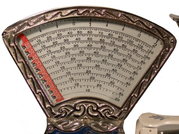 All of the scales in the Antique Warehouse collection have been restored to better than original condition. Most of the scales are constructed of cast iron and are very heavy, many have counter weights as well. All of them have shinny paint finishes, with ornate pin stripping and decorative designs. They also feature highly polished brass and nickel plated areas that accentuate the scale. Often the manufacturers name and other information about the scale is engraved or cast right into these brass pieces. All of the scales in our collection are computing scales. However complex this may seem, it is extraordinarily simple. The standard system for a computing scale is for the front side of the scale to display the actual weight of the product. The customer will see this. On the back side of the scale, where the clerk is standing, is a large amount of numbers. These numbers correspond with the weight and price of the object being weighed. For example if salt water taffy is 15 cents a pound, the clerk will put the amount the customer wants on the scale, and find the 15 marked on the arm that swings to the weight. Where the 15 cent line stops would be the price of the taffy. Click here to view an image of the back side of a computing scale. This image is of a two pound scale and it can price items from 10 to 60 cents, with varying graduations. Varying graduations means that there is not one consistent order the price increase by. If a scale has one and two cent graduations, the price will usually start at a lower number for example five cents a pound, and increase by one cent until it reaches 20, then it will increase by two cents a pound. In total, there are 13 general store scales in the Antique Warehouse collection. All of them are special in there own way with elaborate paint jobs and highly polished brass or nickel. The standard type of scale in our collection is the "fan" style. There are nine of these, three "barrel top" scales, and one "open face" scale. Click on any of the images below to be taken to the scale collection page so you can view all of the scales individually and learn more about them. Bill and Jan Berning. Scales, A Collectors Guide, 1999. |