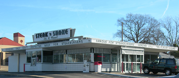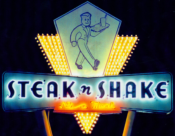 Although we usually stick to the hometown, family owned restaurants, for our Inside St. Louis Feature, this month we chose a publicly traded chain (SNS on NYSE). This is because Greg Rhomberg has been eating at Steak n Shake for over 40 years and it was one of the first stocks he ever purchased. He knows you can always rely on them to cook a great meal at a fair price. While all of the Steak n Shake locations will serve up a great STEAKBURGER, cup of chili and chocolate shake, the home location for the Antique Warehouse is located in South St. Louis County at 1300 Lemay Ferry Road. This vintage location has been around since the 1950's and has all of the classic Steak n Shake charm of the original locations. |