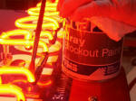 show through. But first the neon is taped off to prevent any run-over